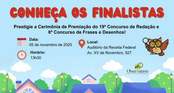 É com grande alegria que o Observatório Social de Maringá divulga a lista dos finalistas do 19° Concurso…
